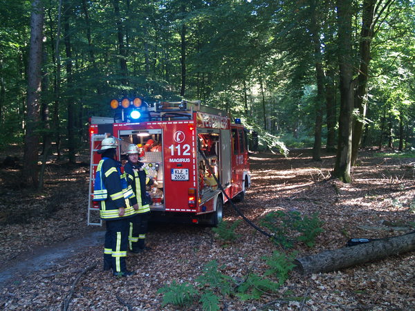 Die Feuerwehr konnte den Brand mit Hilfe eines Schnellangriffsrohres löschen. Sicherheitshalber wurde der Waldboden an der Brandstelle umgeschichtet und noch einmal befeuchtet. Die Brandursache ist unklar.