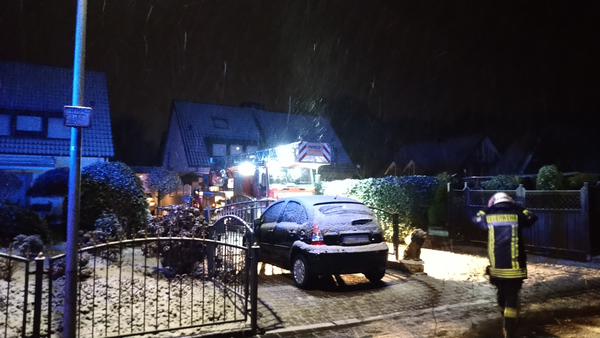 Zwei Atemschutztrupps gingen zur Erkundung in das Wohnhaus vor. Dabei fiel auf, dass bereits Brandrauch aus einer Revisionsklappe im Obergeschoss drang. Das Brandgut wurde aus dem Kaminofen entfernt und mit Hilfe der Drehleiter aus Materborn wurde der Kamin von oben gekehrt. Die herabfallende Glut wurde im Kellergeschoss aufgefangen und abgelöscht. Um zu verhindern, dass sich Brandrauch im Gebäude ausbreitet, wurden ein Überdrucklüfter und ein Rauchschutzvorhang eingesetzt. Nachdem die Luft in den betroffenen Räumen über ein Mehrgasmessgerät kontrolliert wurde, konnte das Gebäude gegen 19:50 Uhr direkt wieder an den Eigentümer übergeben werden.