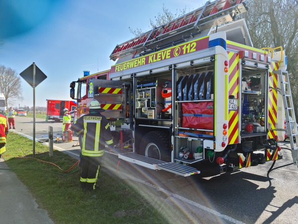 Am heutigen Dienstag (30. März 2021) kam es auf der Emmericher Straße zwischen Warbeyen und Kellen zu einem Verkehrsunfall, an dem drei PKW beteiligt waren. Gegen 12:30 Uhr ging die Alarmierung für die Feuerwehr Kleve ein.
