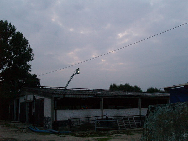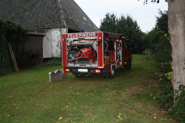 Das Übungsobjekt war diesmal ein landwirtschaftliches Anwesen auf der Rheinhalbinsel Salmorth, dass von den Besitzern freundlicherweise für die Übung zur Verfügung gestellt wurde. In der ehemaligen Betriebswohnung, einem abgetrennten Gebäudeteil, sollte ein Feuer ausgebrochen sein. Vier Arbeiter wurden vermisst. Die ersten Trupps gingen darum natürlich sofort zur Menschenrettung in das Gebäude vor. Gleichzeitig wurde eine Wasserversorgung aufgebaut und ein Löschangriff vorbereitet. Neben den drei Löschgruppen war auch die Drehleiter des Löschzuges Kleve an der Übung beteiligt. Diese wurde in Stellung gebracht, um die Brandausbreitung auf die anderen Gebäude zu verhindern.