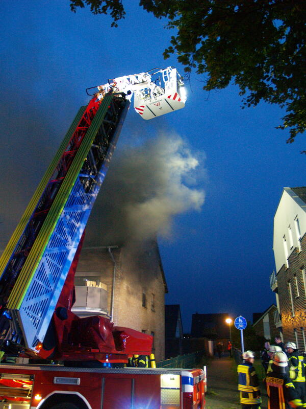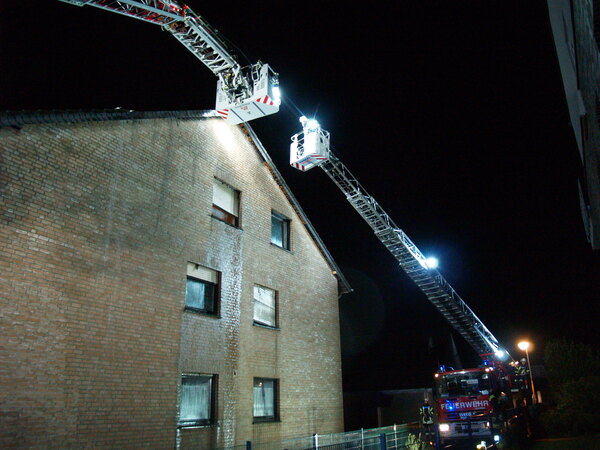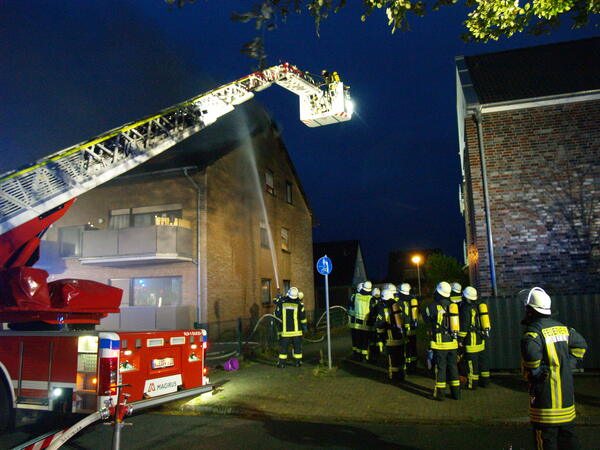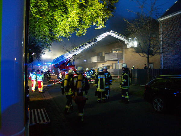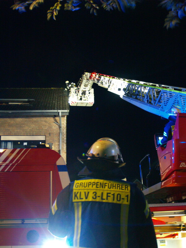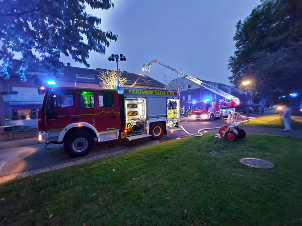 Um kurz vor sieben Uhr wurden am Samstagabend (2. Oktober 2021) die Löschzüge Kellen und Nord-Ost (Griethausen, Schenkenschanz, Warbeyen) zum Brand eines Mehrfamilienhauses an der Straße Steenpad in Kellen alarmiert. Das Einsatzstichwort lautete zunächst „Kellerbrand“, da Rauch aus dem unteren Teil des Gebäudes zu dringen schien. Letztendlich brannte die Dämmung unter einer Giebelwand. Das Gebäude wurde evakuiert und der Brand mittels zweier Drehleitern gelöscht.
