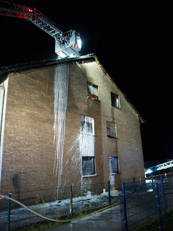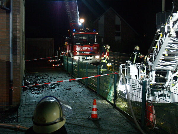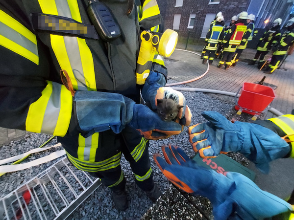 Nachdem die sechs Wohnungen kontrolliert wurden, konnte sichergestellt werden, dass sich keine Menschen mehr im Gebäude befanden. Es wurden auch mehrere Katzen aus den Wohnungen gerettet und den Besitzern übergeben. Der Brand entwickelte sich zwischen Wand und Klinker von der Unterseite des Gebäudes bis zur Dachkante. Dabei wurden auch mehrere Fenster und Rollläden in Mitleidenschaft gezogen. Es konnte aber verhindert werden, dass das Feuer in die Wohnungen eindrang. Das Dach wurde durch die Feuerwehr teilweise abgedeckt, um den Brand von oben mit Löschschaum bekämpfen zu können. Der Einsatz war gegen 21:45 Uhr beendet.