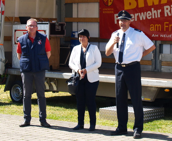 Im Rahmen des 5. internationalen Feuerwehr-Oldtimertreffens in Düffelward hat Bürgermeisterin Sonja Northing symbolisch den ersten Spatenstich für den Neubau des Feuerwehrgerätehauses ausgeführt.