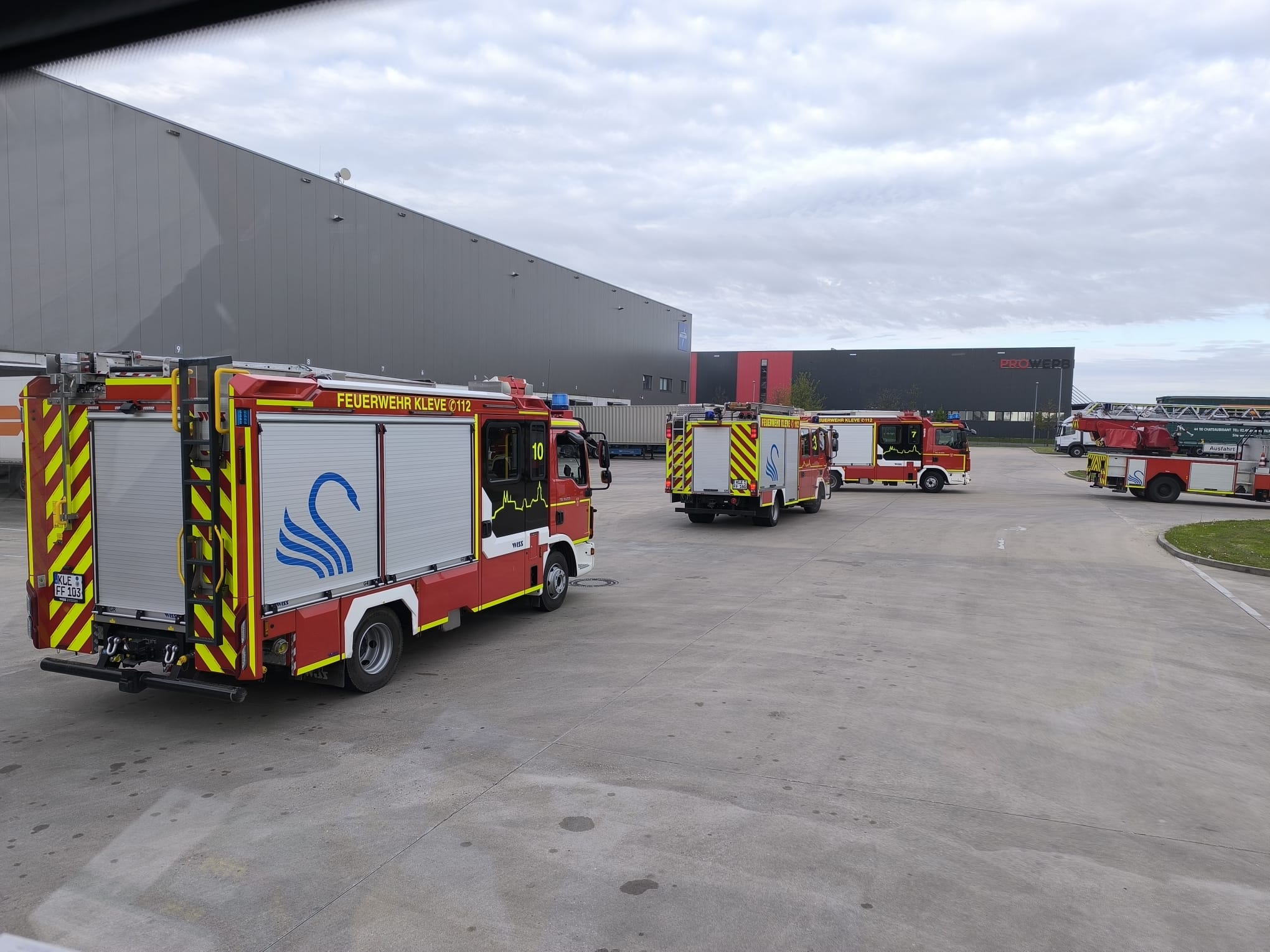 Die Freiwillige Feuerwehr Kleve führte im Industriegebiet ein Fahrsicherheitstraining für Großfahrzeuge durch. Geübt wurden unter anderem Gefahrenbremsungen, Ausweichmanöver und ein Slalomparcours zur Verbesserung des Fahrzeughandlings.