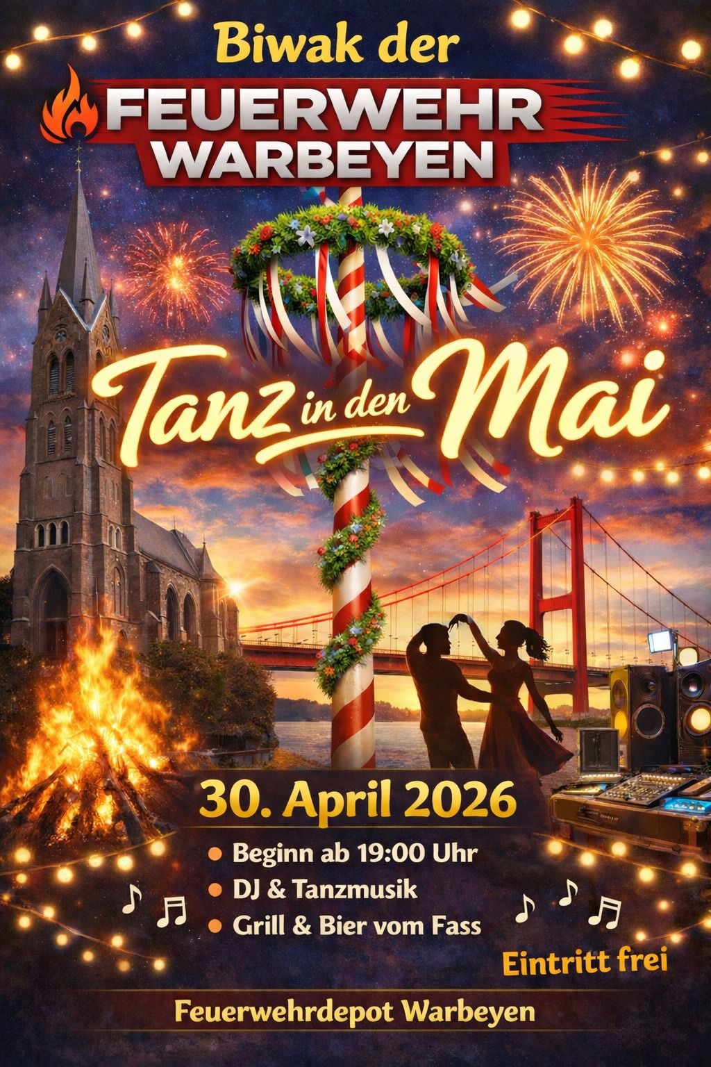 Biwak in Warbeyen 30. April 2026 Veranstaltungen Warbeyen Die Löschgruppe Warbeyen veranstaltet am 30. April wieder den Biwak. Ab 19:00 Uhr wird in den Mai getanzt.