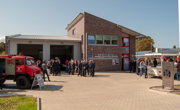 Das neue Gerätehaus an der Rinderner Straße kann sich sehen lassen: Auf insgesamt rund 370 m² sind neben großzügigen Stellplätzen für zwei Fahrzeuge auch geschlechtergetrennte Umkleiden und Sanitärbereiche, eine Werkstatt, ein Büro und ein Schulungsraum mit einer kleinen Küche vorhanden. Gerade im Hinblick auf das bisherige Domizil, das ehemalige Schulgebäude, ist das ein großer Schritt nach vorn.