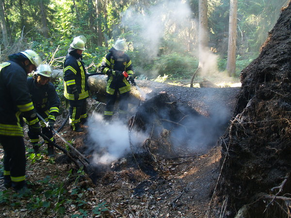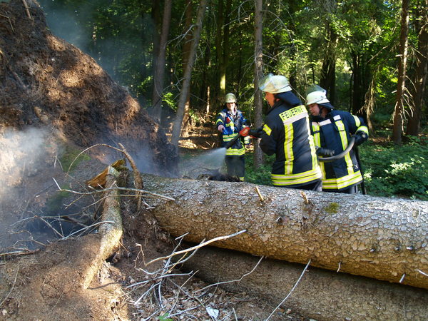 In der Nähe des Rosenbordenberges hatte sich, ca. 15 m von einem Waldweg entfernt, an der Wurzel eines umgestürzten Baumes ein Schwelbrand entwickelt. Die Rauchentwicklung war deutlich sichtbar und wurde von Spaziergängern entdeckt.