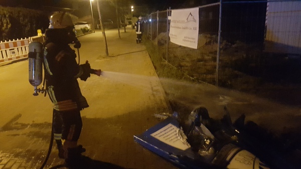 Gegen zwanzig vor zwölf kam dann der dritte Einsatz hinzu: In Rindern wurde eine brennende Baustellentoilette an der Hohen Straße gemeldet. Beim Eintreffen des Löschzugs Rindern stand diese in Vollbrand. Ein Trupp unter Atemschutz konnte das Feuer zügig mit der Schnellangriffsleitung löschen und das Übergreifen auf den nahegelegenen Bauwagen verhindern. Die Polizei ermittelt wegen Brandstiftung.