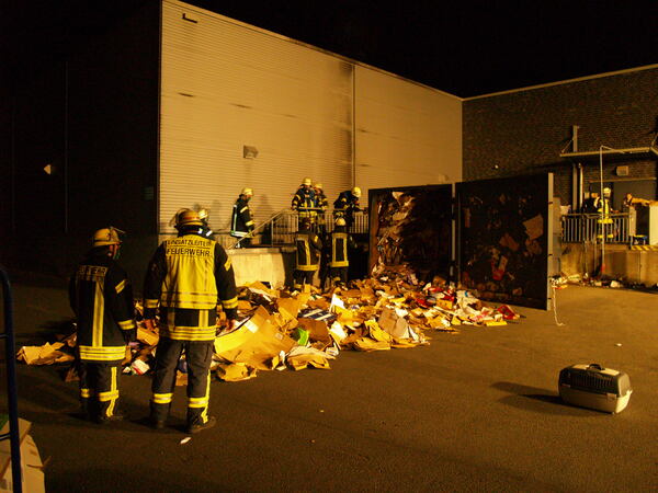 Mitarbeiter eines Drogeriemarktes an der Sackstraße hatten gegen 21:40 Uhr aus einer Presse für Kartonagen Geräusche gehört, die auf eine Katze schließen ließen. Sie schalteten die Presse ab und alarmierten die Feuerwehr. Da der angeschlossene Container nahezu voll mit komprimierten Kartonagen war, war es schwierig, das Tier zu lokalisieren. Der Löschzug Kleve arbeitete sich langsam vor, um verschiedene Hohlräume zu kontrollieren, in denen es vermutet wurde. Dabei wurde ein erheblicher Teil des Containerinhaltes auf dem Hof zwischengelagert. Die Katze konnte letztendlich aber nicht gefunden werden. Der Berg von Kartonagen wurde, auch mit tatkräftiger Unterstützung der Mitarbeiterinnen des Drogeriemarktes, wieder in den Container geräumt. Dieser Einsatz dauerte bis ca. 0:10 Uhr.