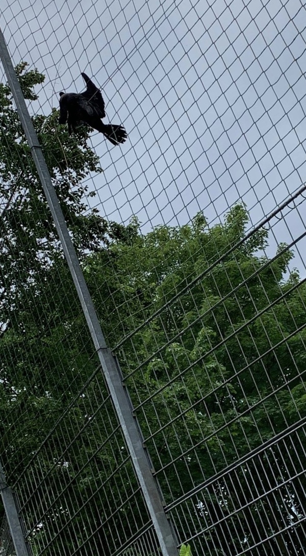 Diese Landung war schief gegangen: Ein Kormoran hatte sich am Donnerstag, dem 18. Juni 2020 gegen 16:30 Uhr, kopfüber in einem Fußball-Fangnetz an einem Bolzplatz in Materborn verheddert. Aufmerksame Mitbürger, die in der angrenzenden Parkanlage unterwegs waren, wurden auf die Notlage aufmerksam und riefen die Feuerwehr.
