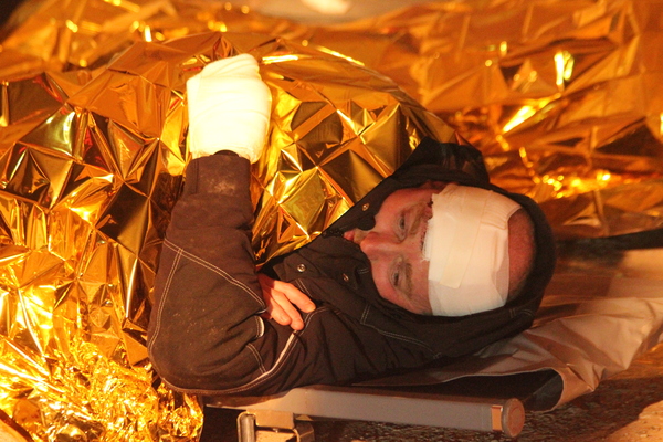 Nachdem das anfängliche Chaos sich lichtete und die einzelnen Aufgabenbereiche durch die Einsatzleitung klar definiert wurden, begannen im Anschluss an den verschiedenen Stellen des Übungsobjektes die Rettungsmaßnahmen durch die eingesetzten Kräfte der Feuerwehr. Parallel errichteten die Kräfte des Malteser Hilfsdienstes eine Verletztensammelstelle und sichteten die von den Einsatzkräften geretteten Personen. Anschließend wurden die Personen nach deren Verletzungsmustern durch die Kräfte der Malteser in Kategorien eingeteilt, um eine entsprechend priorisierte Versorgung durchzuführen.