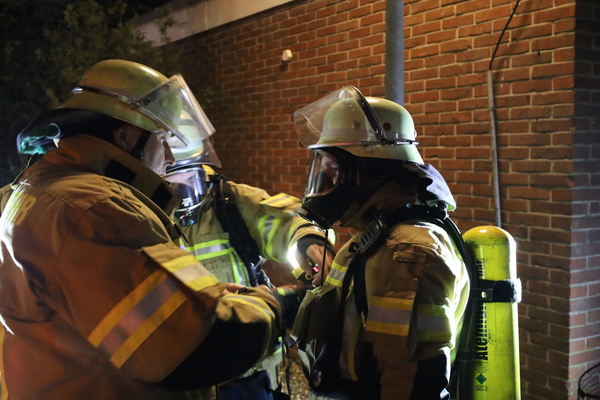 Eine weitere Herausforderung, die es durch die Einsatzkräfte beider Feuerwehren zu meistern galt, war die Rettung einer bewusstlosen Person, die möglichst schonend von einem Dach gerettet werden musste. Auch diese Aufgabe wurde von Kräften beider Wehren erfolgreich absolviert. Gegen ca. 21:00 Uhr konnte durch Einsatzleiter Jan-Peter Fruhen dann das Übungsende verkündet werden. Abschließend waren sich alle Beteiligten einig, dass die Übung sehr gut abgearbeitet wurde und alle Seiten voneinander lernen konnten.