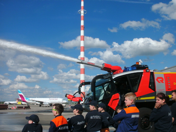 Am 13. Mai besuchte die Jugendfeuerwehr Kleve mit einer Gruppe von 19 Personen die Flughafenfeuerwehr in Düsseldorf. Es wurde die Feuerwache nebst Fahrzeugen aus dem Feuerwehr- und Rettungswesen besichtigt. Ein Höhepunkt war die Vorführung des Wasserwerfers der Firma Rosenbauer.