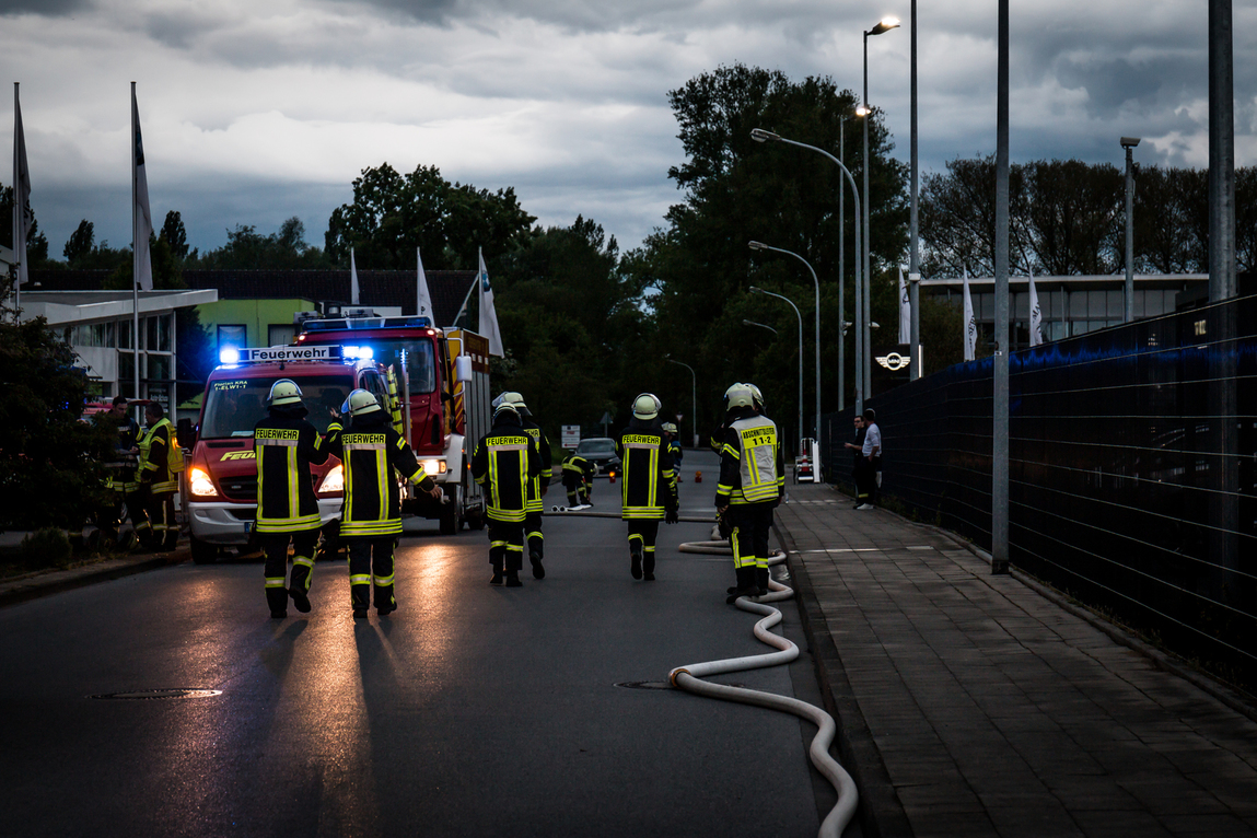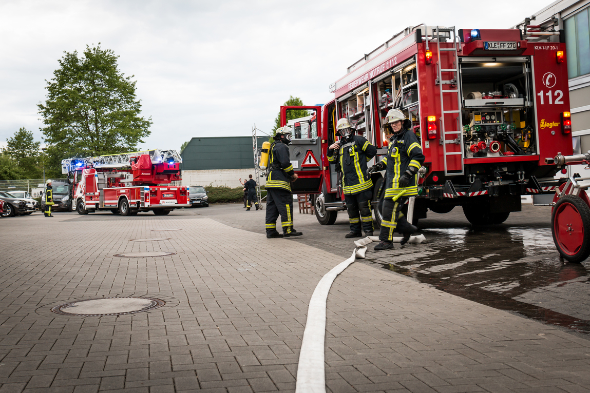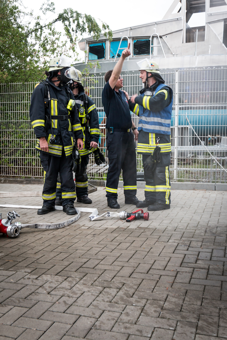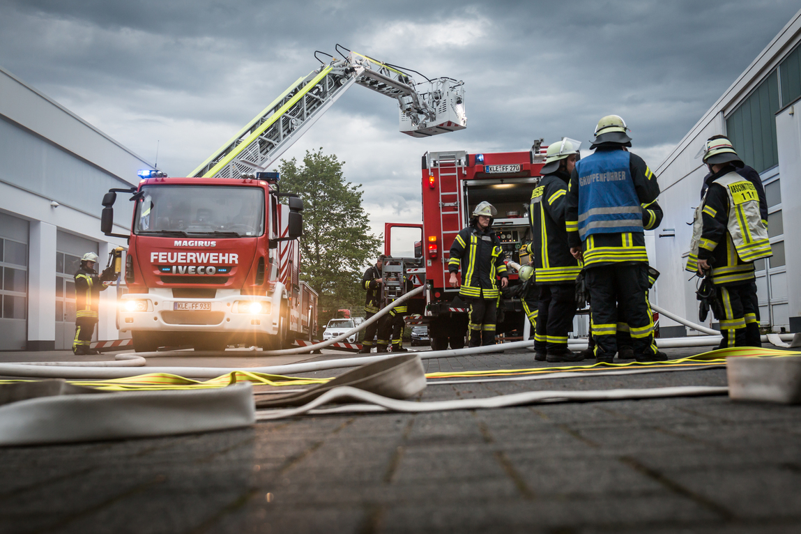 „Einsatz für die Löschzüge Kleve und Nütterden – Brand in einer Kfz-Werkstatt – 4 vermisste Personen“ – so könnte die Alarmierung der Feuerwehr gelautet haben. Normalerweise rücken diese Löschzüge selten gemeinsam aus, aber hier handelte es sich um eine Übung, die von befreundeten Mitgliedern der freiwilligen Feuerwehren Kleve und Kranenburg organisiert wurde.