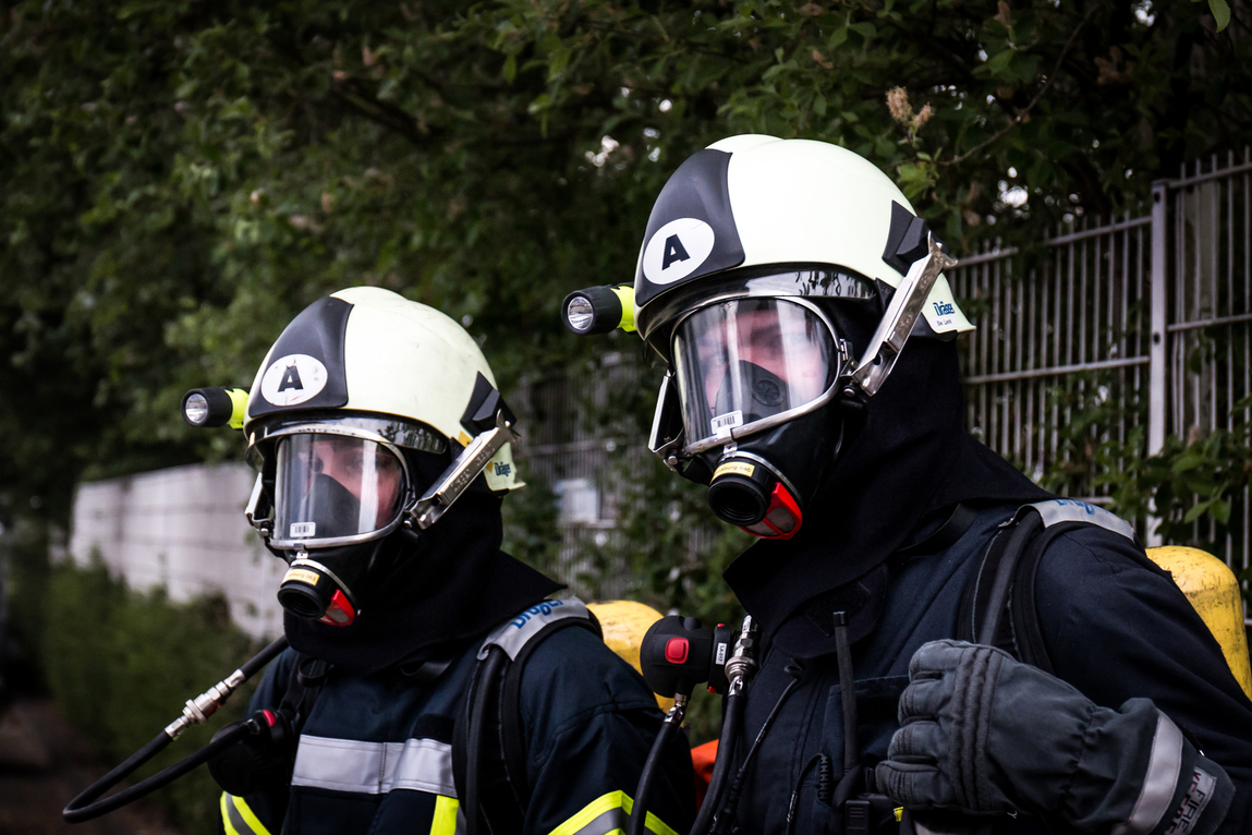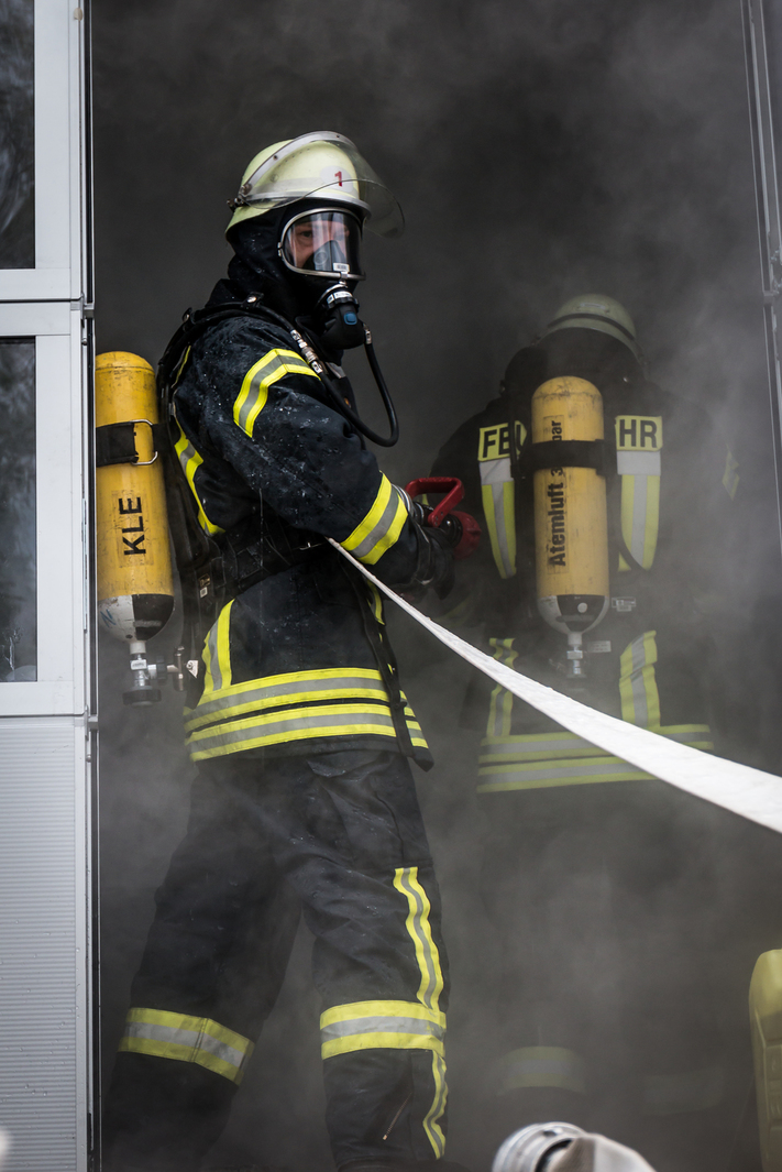 Oberste Priorität hat für die Feuerwehr immer die Rettung von Menschenleben; die Brandbekämpfung war also erst einmal zweitrangig. Allerdings ist eine ausreichende Wasserversorgung für die Sicherheit der vorgehenden Trupps unabdingbar. Nachdem diese gemeinschaftlich von den Löschzügen Nütterden und Kleve aufgebaut worden war, könnten mehrere Trupps mit Hilfe von Atemschutzgeräten in die verrauchte Halle vordringen, um nach den vermissten Personen zu suchen. Hier zählt natürlich jede Sekunde. Nach kurzer Zeit konnten die Vermissten gefunden und dem Rettungsdienst übergeben werden. Der Rettungsdienst begann unverzüglich mit den lebensrettenden Sofortmaßnahmen und übernahm die Behandlung der Verletzten.