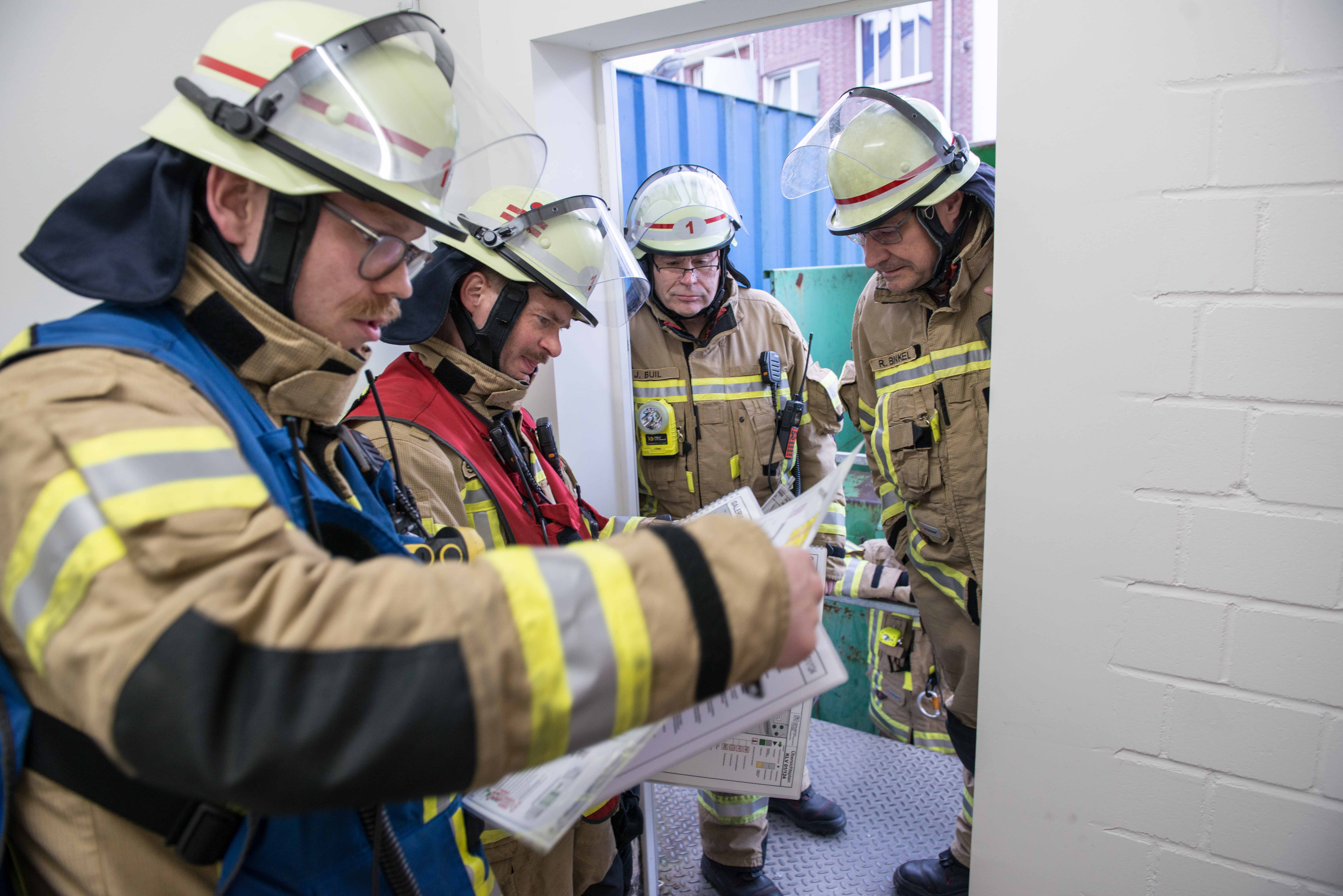 Im Anschluss erfolgte eine gemeinsame Begehung des Gebäudes. Dabei wurde unter anderem hervorgehoben, dass das Objekt flächendeckend mit Wandhydranten ausgestattet ist, sodass im Einsatzfall zunächst keine externe Löschwasserversorgung erforderlich ist. Gleichzeitig stellte die komplexe Gebäudestruktur mit mehreren Eingängen auf unterschiedlichen Ebenen eine besondere Herausforderung dar.
