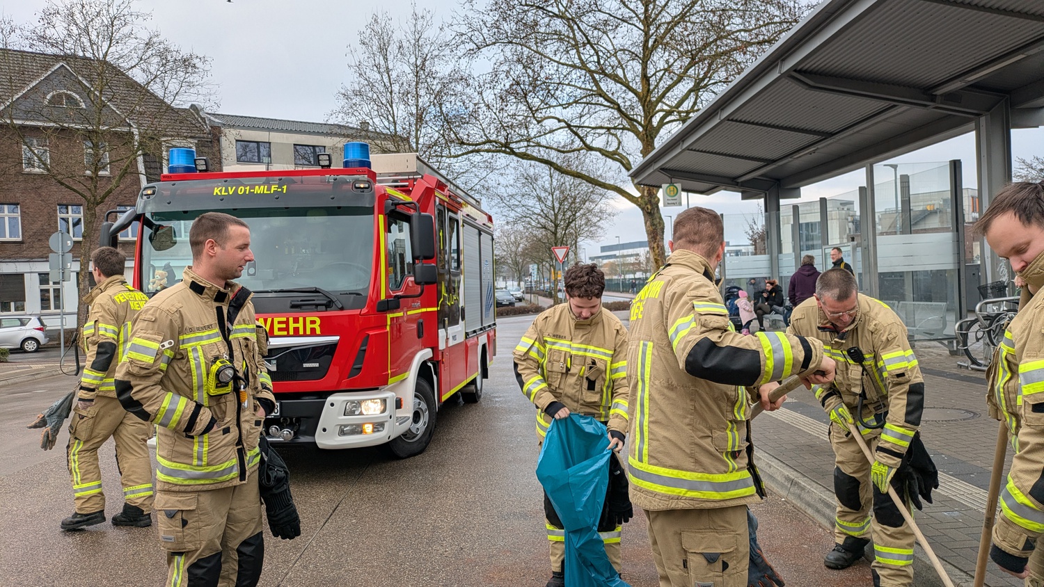 Am Busbahnhof Kleve wurde schließlich ein größerer Ölfleck festgestellt. Dieser wurde durch die Feuerwehr abgestreut und aufgenommen. Anschließend wurde der Einsatz beendet.